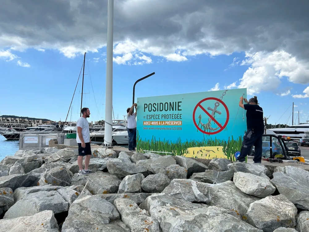 Cette sensibilisation se traduit par la diffusion d’informations sur la posidonie aux plaisanciers par le biais notamment d’un écran géant à l’accueil de la capitainerie, des réseaux sociaux en mettant en avant les différents impacts de l’activité de l’Homme sur la posidonie mais également par l’implantation d’une affiche de 4m par 2,5m dans le chenal d’entrée du port afin de rappeler, à tous les visiteurs du port, l’impact de leur activité et de les inciter à adopter des comportements respectueux vis-à-vis de ces herbiers.